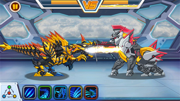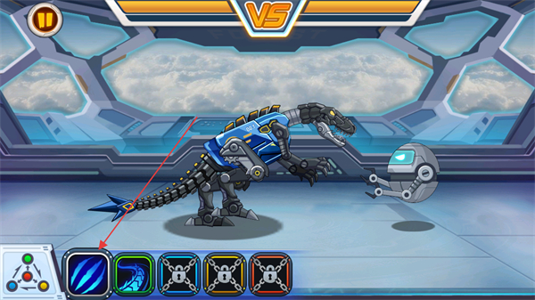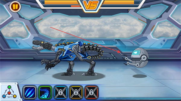 1、操控机械恐龙,点击下方技能图标释放攻击,与敌方机器人对战。