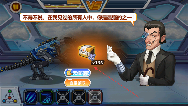 4、战斗胜利后,领取奖励宝箱,获取资源以强化机械恐龙,提升战斗力。