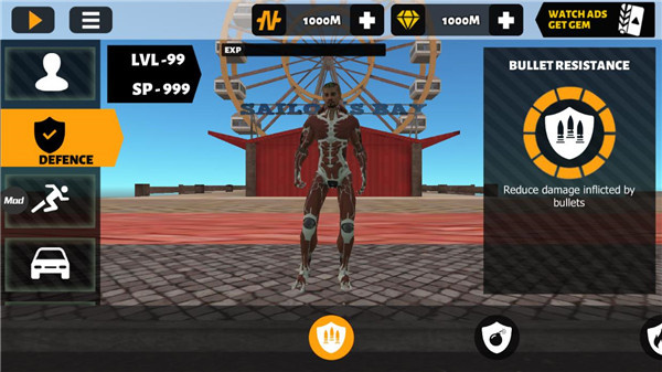 拥有精彩的3D动作表现,角色具备近乎绝对防御的特性,能抵御大部分攻击,在对抗犯罪团伙时更具生存优势。
