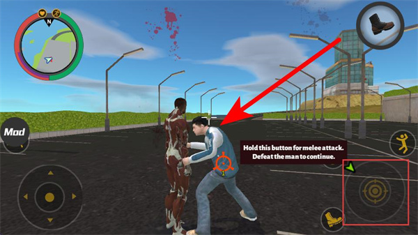 2、操控角色移动到目标单位附近,长按攻击按钮触发近战攻击,击败场景中的敌人以推进关卡进度,同时留意界面的操作提示。