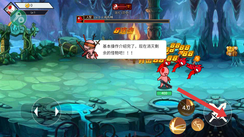 3、持续点击右侧攻击按钮,可进行连续攻击,能更快地对敌人造成大量伤害,提升战斗效率,快速清理怪物。