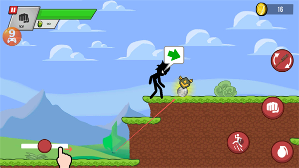 1、操控火柴人移动,靠近道具获取资源,收集金币,提升战力。