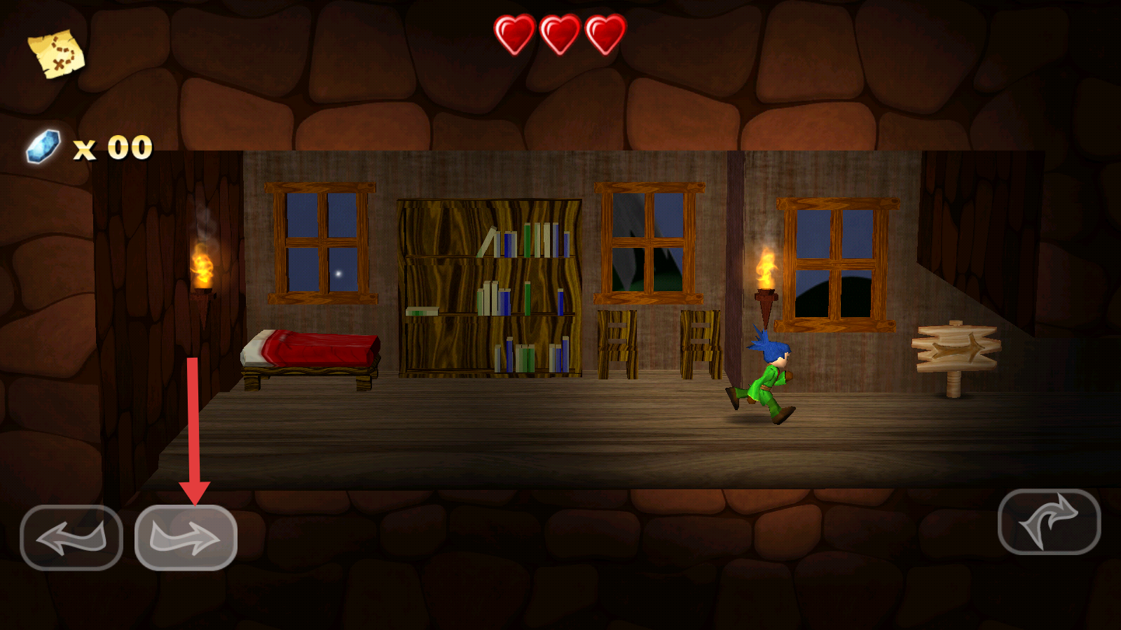 1、在冒险游戏中,通过点击方向按钮控制角色移动,探索房间内的各个区域,寻找线索和资源,游戏剧情操作。