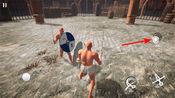 1、在游戏中,点击盾牌按钮开启防御姿态,防御操作是规避伤害的关键操作,开启后可抵挡敌人的攻击,保障自身生存。
