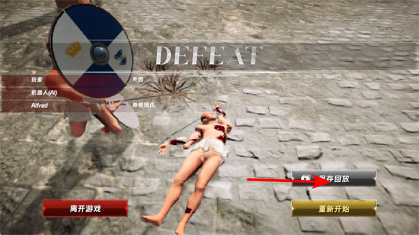 4、失败后点击保存回放按钮分析战局,回放分析是提升技术的重要操作,分析后可总结失败原因,调整后续攻击走位策略。