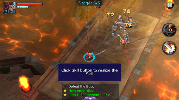 2、按提示点击右侧Skill按钮释放技能,强化攻击效果,快速清理敌人,推进关卡进度。