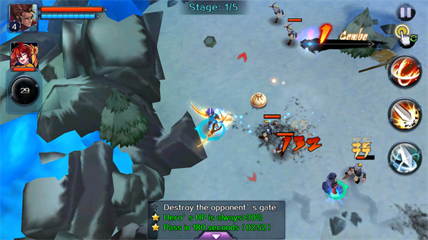 4、保持英雄存活,持续攻击剩余敌人,向击败Boss的目标推进,同时维持通关的星级条件。