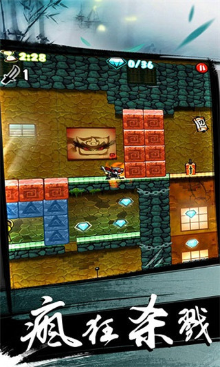 1、操控忍者躲避火焰陷阱,收集场景中的钻石,当前目标为收集14颗钻石,注意计时。