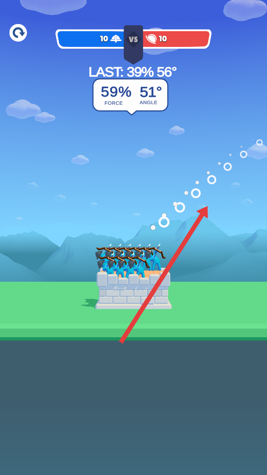 2、攻击操作方式:对战过程中,操控角色调整弓箭发射的角度与力度,瞄准敌方单位后完成攻击,通过精准操控实现高效打击,抵御敌人进攻击溃敌方防御。