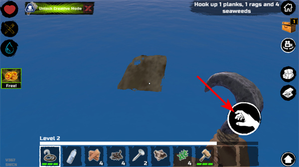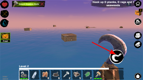 使用挂钩捕捉海上漂浮的碎片、藻类、盒子等各类资源,不同资源有不同获取难度,合理规划收集优先级,为生存提供物资保障。