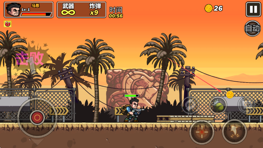 1、关卡战斗操作:进入关卡后,通过虚拟摇杆控制角色移动,点击射击按钮瞄准敌人开火,根据敌人数量调整攻击策略,优先消灭威胁较大的目标。