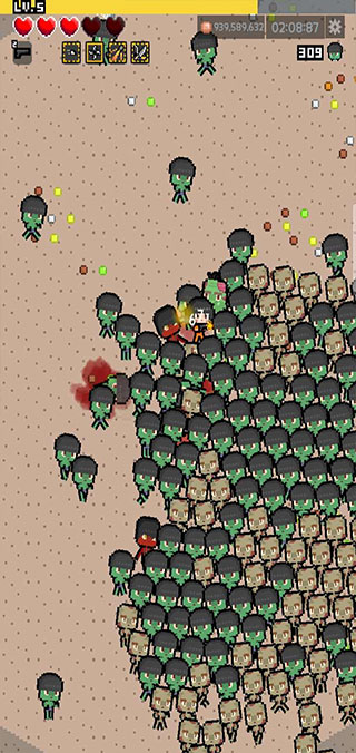 1、爽快僵尸击杀:设计“大屠杀”式战斗体验,玩家可在不断涌现的僵尸群中展开攻击,借助各类武器消灭僵尸,击杀过程伴随僵尸掉落金币与道具。