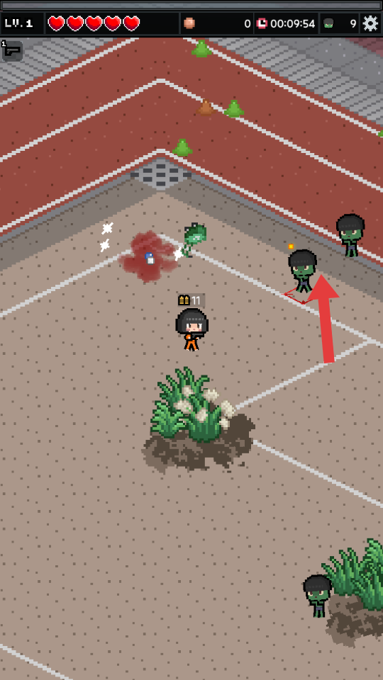 1、操控角色在场景中进行移动,控制主动的靠近僵尸,寻找合适的攻击时机,以便对僵尸发起有效攻击。
