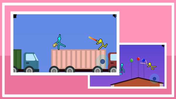 3、当蓝色火柴人获取枪械道具后点击攻击键远程射击黄色火柴人、注意躲避反击。