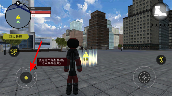 1、在初始场景中,通过左侧的摇杆控件操控角色移动,按照进入高亮的任务区域,这是熟悉角色操作的基础步骤,摇杆调整移动方向与节奏。