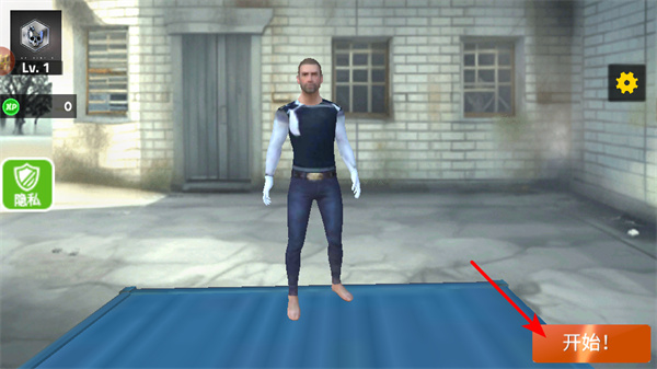 1、游戏中点击开始按钮,可进入生存竞技场景,这是开启游戏的关键操作,点击后将参与多人对战挑战。