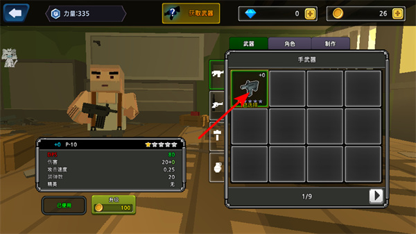 1、游戏中在武器界面选择如P-10之类的枪械装备,这是提升战斗力的关键操作,需关注武器的伤害、攻击速度等属性。