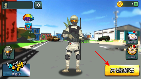 1、游戏中点击开始游戏按钮,可进入射击对战场景,这是开启游戏的关键操作,点击后将参与多人竞技战斗。
