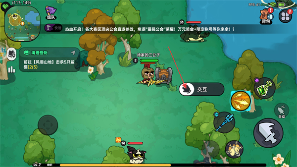 1、在非安全区内探索时会遇到隐藏的宝箱,点击右侧交互按键开启宝箱。
