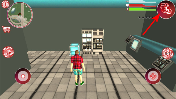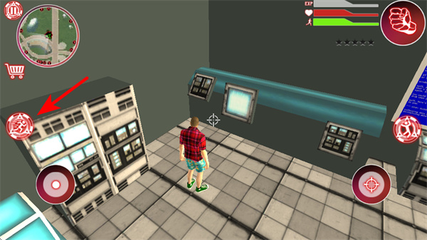 2、在城市场景中操控移动按钮控制角色行走,这是探索区域的基础操作,移动后可遍历城市内的建筑与设施,寻找内容。