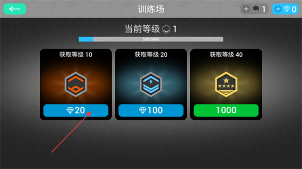 4、点击右上角黑色方块按钮可以查看当前等级,可以花费钻石进行等级提升。