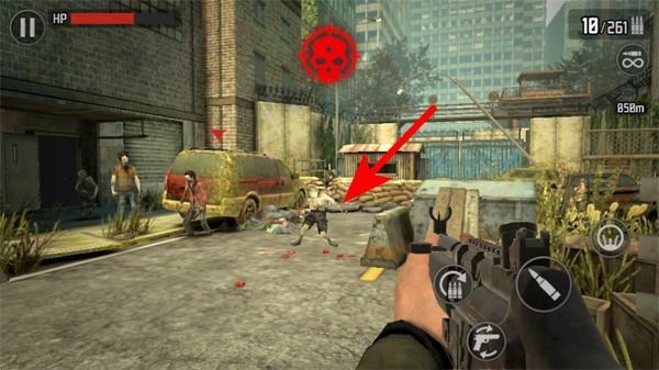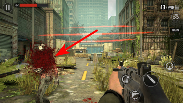 3、跟随箭头指引的方向,瞄准对应的敌人区域射击,这是消灭目标敌人的核心操作,击中后敌人会被击败并推进任务进度。
