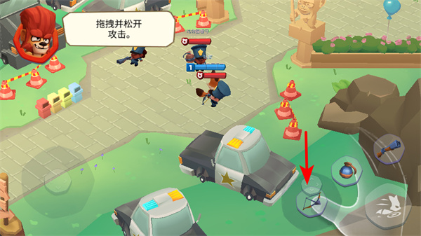 3、拖拽攻击按钮并松开,这是发起攻击的核心操作,操作后角色会对目标造成伤害,击退敌方单位,保障自身在场景中的安全。