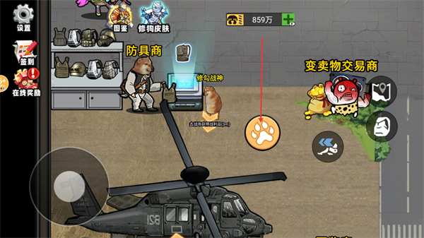 1、在游戏场景中找到防具商,点击爪印按钮可与其交互进入相关界面,完成与NPC的互动操作。