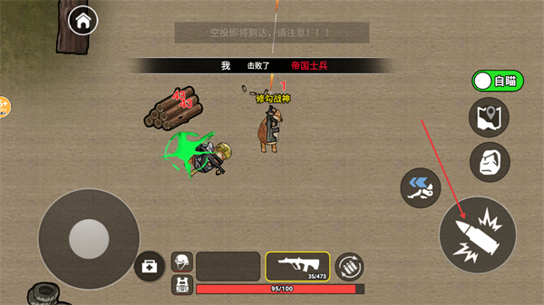 4、游戏过程中击败敌人如帝国士兵可获得道具,注意空投提示,利用武器和道具提升战力,通过界面按钮释放技能等操作助力战斗进程。