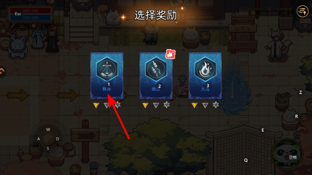 2、在奖励选择界面点击对应的技能卡片,这是强化能力的基础操作,选定后可获得对应的技能增益,提升在战斗中表现。