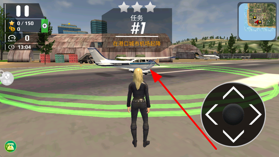 2、在场景中,用手机滑动操控角色移动,靠近指定的飞机,准备进入飞机进行驾驶操作,感受模拟飞行的前期准备过程。