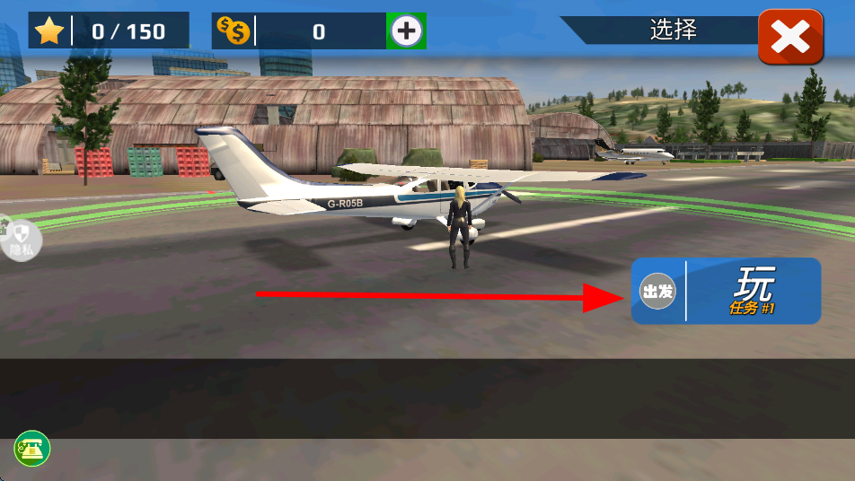 3、靠近飞机后,接受任务,点击出发按钮,开始执行飞行任务,此时将进入飞机驾驶的具体操作环节,体验飞行的乐趣。