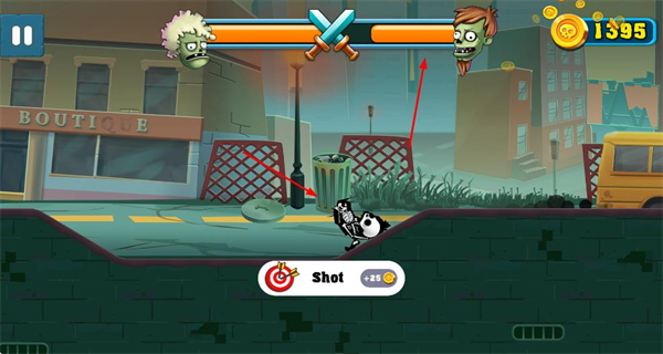 采用细腻画风刻画僵尸形象与战斗场景,箭矢飞行轨迹清晰,击中特效生动,街机风格的画面搭配激昂音效,营造沉浸式战斗氛围。