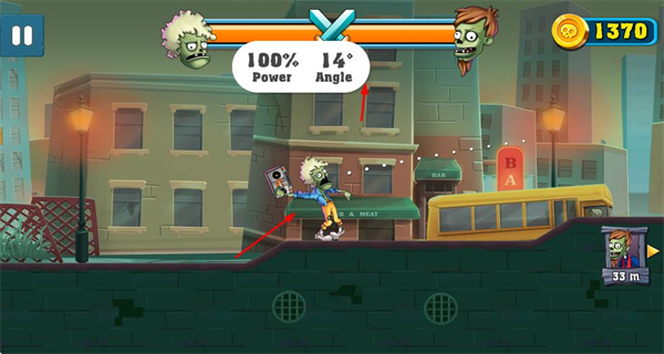 2、调整攻击的力量和角度,精准攻击敌方僵尸,发起对战。