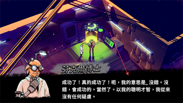 2、进入剧情场景后,观看芬克爾博士的对话内容,了解游戏背景,同时留意标识来推进流程。