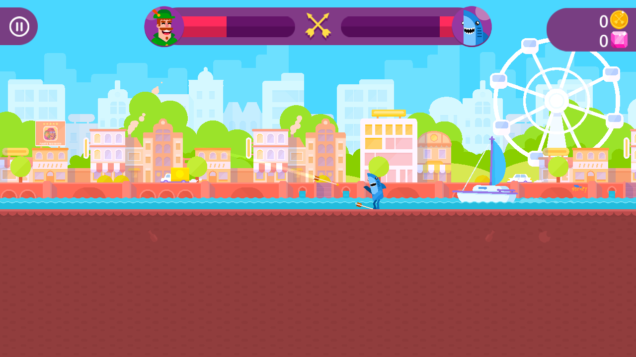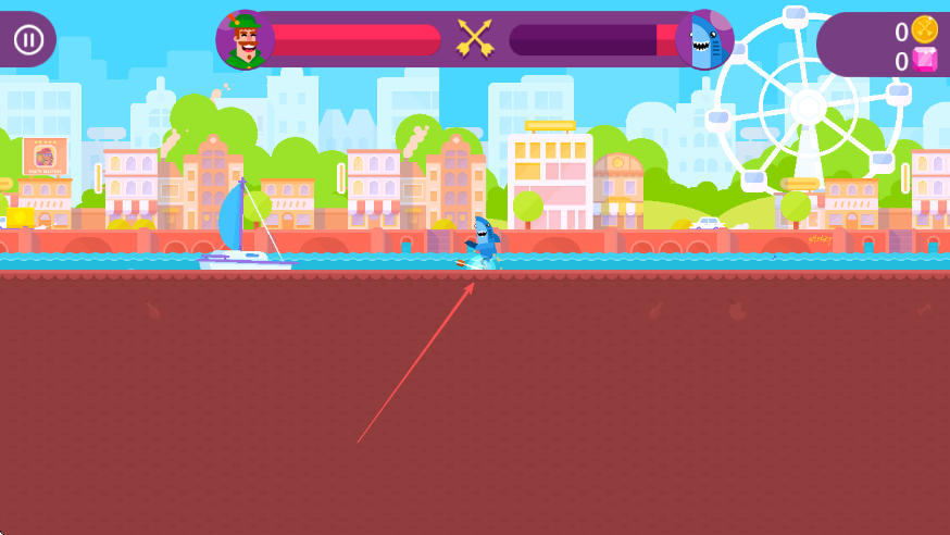4、持续观察双方血条变化,多次调整发射的力度和角度,击败敌方角色获取胜利。