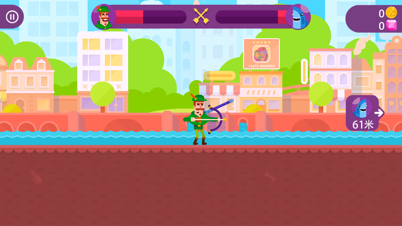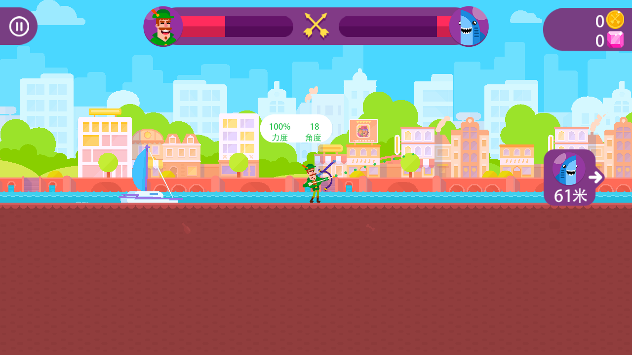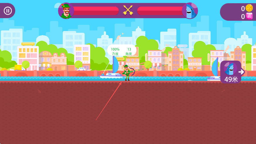 2、点击并拖动己方角色的弓箭,调整力度和角度,白色气泡会显示相关数值。