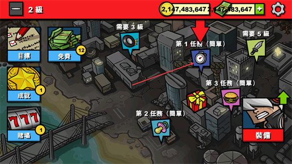 1、在城市地图界面点击第1任务,可查看该任务的具体内容,同时借助左侧功能按钮辅助任务准备。