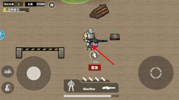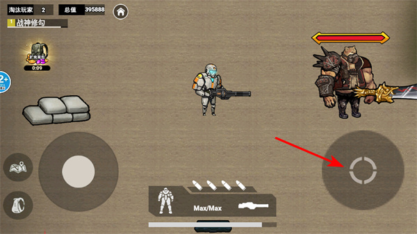 2、面对大型敌人时,点击右侧圆形攻击按键发动攻击,持续输出可快速削减其血量,注意躲避敌人攻击确保自身安全。