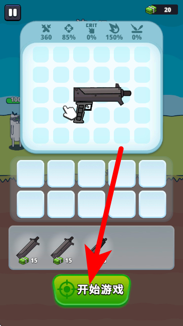 4、使用金币选择新的枪械部件组装,点击开始按钮,进入下一波对战。