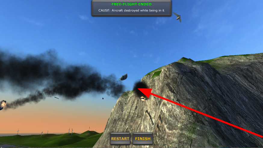 4、要注意观察周围环境,避免飞机撞击到山体等障碍物,一旦发生坠机等情况,可选择重新开始飞行,继续体验模拟飞行的乐趣。