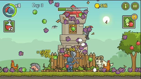 4、经过一天的发展,骑士力量提升,城堡周围的障碍物造成更多伤害,为后续城堡升级和公主营救积累资源。