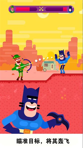1、一款基于抛物线设定的对决游戏,选择力度与抛出方向,命中敌人,在他伤害你之前抢先解决掉他。