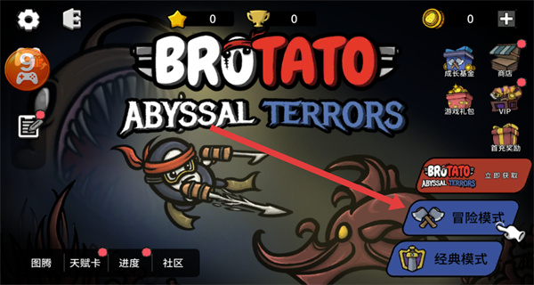1、打开土豆兄弟Brotato游戏,在主界面点击冒险模式。
