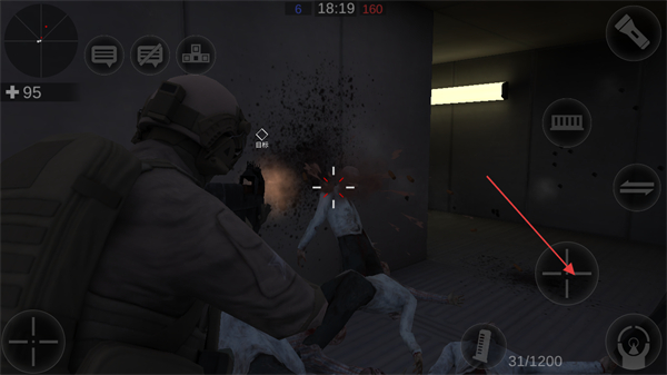 4、在战斗场景中,瞄准标注目标的敌人,点击射击按钮发起攻击,击败敌人获取得分以推进游戏的战斗流程。