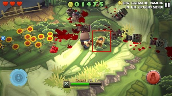 2、点击右侧A键发动攻击,可使用机枪、军刀等武器对僵尸造成伤害。