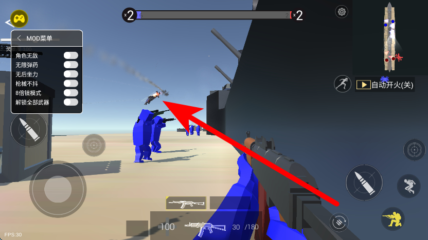 4、借助辅助功能战斗,可开启辅助菜单,能选择角色无敌无限弹药等功能,在这些功能助力下,更顺利地对敌人发起攻击,提升战斗效率。
