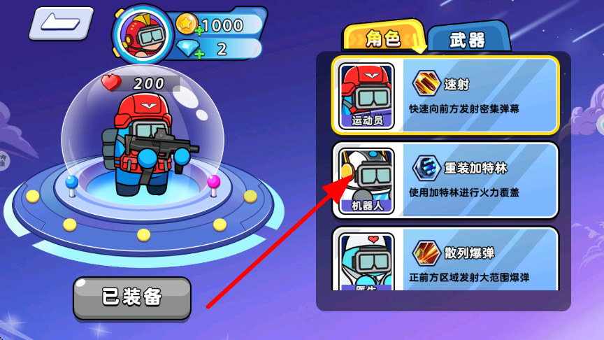 2、角色选择上,运动员有速射技能,能快速向前方发射密集弹幕,压制敌人,机器人可使用重装加特林进行火力覆盖,在团战或对付大量敌人时效果显著。
