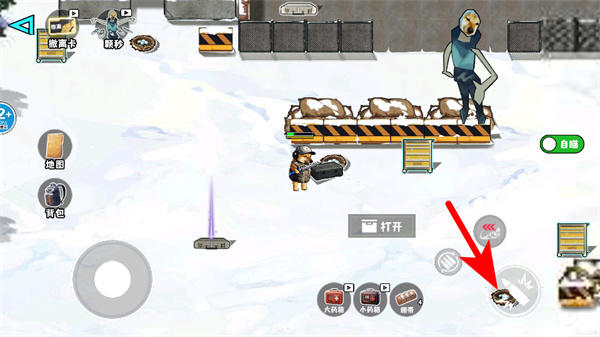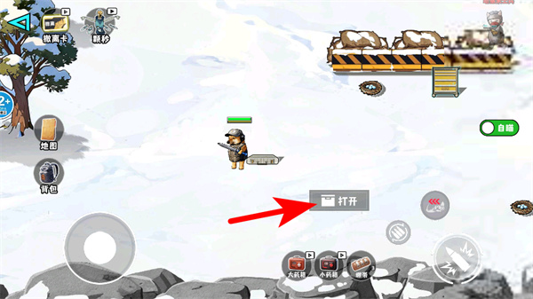 1、进入游戏界面后,点击打开按钮,这是查看背包内容的关键操作,准确点击才能进入背包界面。