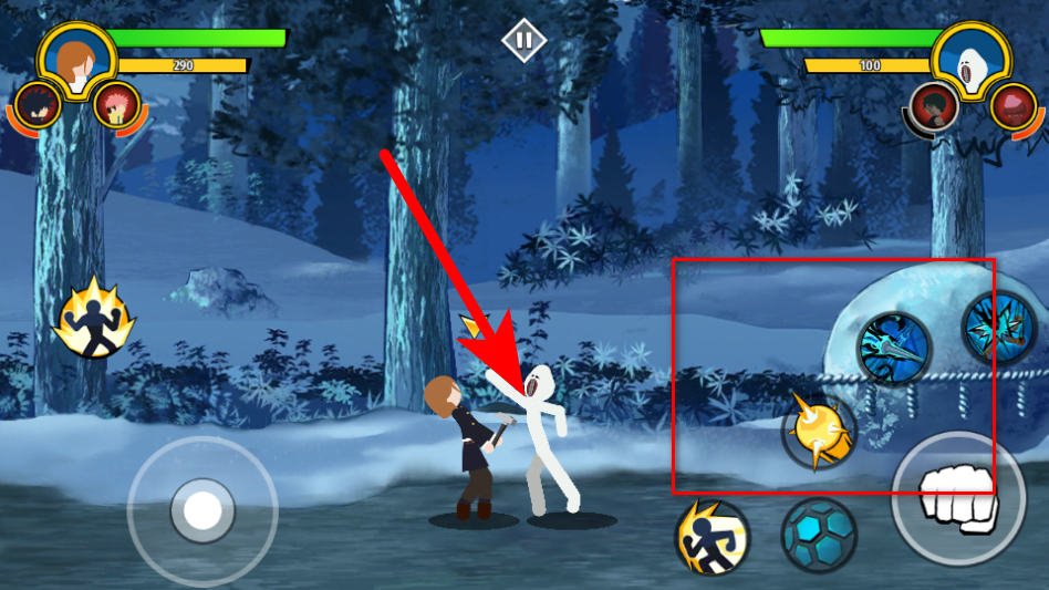 4、利用右侧的技能按钮释放对应技能,配合攻击击败敌方单位完成关卡目标。